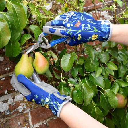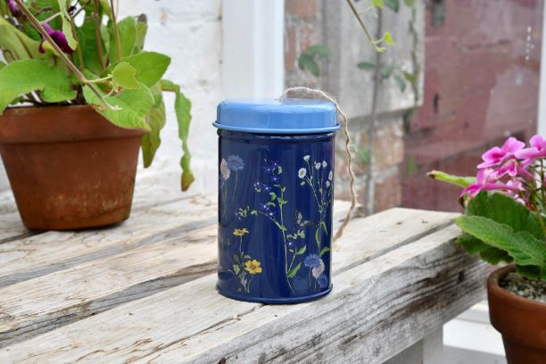 The new ‘British Meadow’ collection includes much-loved gift ideas from previous RHS Gifts design collections, also introducing a new option with gift-boxed RHS-endorsed gardening snips. What’s more, with gorgeously designed plastic-free packaging, the collection demonstrates that style can go hand-in-hand with concern for the environment. The elegant new design has been created by Burgon & Ball featuring illustrations dating back to 1815, specially selected from the RHS Lindley Library of historic botanical art. A classic navy blue background lets the jewel colours of the blooms and butterflies shine out, bringing this lovely design to life. The RHS-endorsed trowel and fork set, that most classic of gardening gifts, looks very striking in the new British Meadow design, also featuring plastic-free cardboard packaging. The tools have painted blue handles bearing the RHS logo and the trowel carries an engraved Gertrude Jekyll quote. As always, the tools have a lifetime guarantee, indicating their quality. The seed packet storage tin has been designed by gardeners, for gardeners. With smooth moulded curves, the tin is divided into three useful compartments, including a lengthways one to accommodate the very largest seed packets. The remaining items in the British Meadow line-up are the ‘RHS Gifts for Gardeners’ popular gifts for gardeners the twine in a tin, gardening gloves, indoor watering can, and super-comfortable Kneelo® kneeler, which showcases the beautiful design to stunning effect. The popular ‘letterbox-friendly’ gift options return in the new colourway. An RHS-endorsed flower and fruit snip, and a set of an RHS-endorsed pruner with holster carrying the British Meadow design, are both presented in gift boxes less than 3cm in height, ideal for sending by post. Engineered cardboard keeps the tools firmly in place inside their sturdy, beautifully printed card box. With blue soft-grip handles to match the design, the cutting tools carry a 10-year guarantee, so we know we’re choosing a high-quality gift.