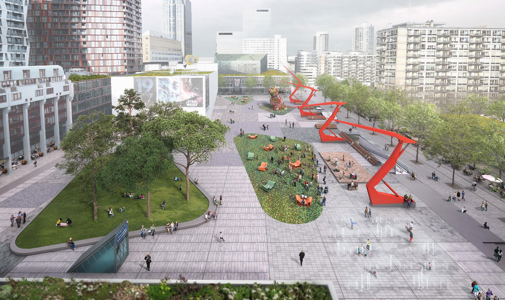 For this reason the urban development office of the city of Rotterdam has started an important collaboration with the team Juurlink+Geluk for the Hofplein project; Urbanisten, DS Landschapsarchitechten and Dakdokters for Hofbogen park, with artist Jeroen van Kesteren for Schouwburgplein; with the city planner Emiel Arends for WestBlaak; Bureau Hosper and MORE landscapes for Alexanderplein; SWA/Balsley for Maashaven park; Christoph Cornille with LOLA landscape architects for Tidalpark Feyenoord.
