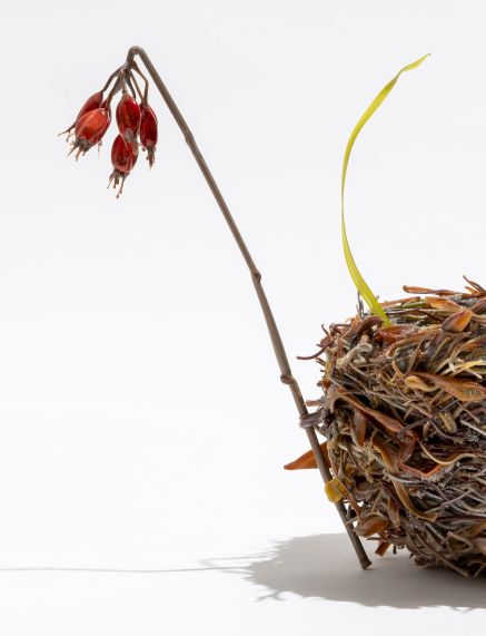 Decay and splendor, autumn and spring, shadow and light, death and life, linked to each other in an infinite cycle. In perfect Mono no aware style – the Japanese aesthetic concept of the tendency to perceive a nostalgic feeling in the fleeting and passing beauty of nature and human life –, the hyper-realistic floral compositions by Lilla Tabasso highlight all the contradictions, imperfections and fears of the human being, emphasized and at the same time annihilated in the creation of positive elements of balance, designed for each single composition. A harmonious balance is thus formed, where the achievement of Atarassia is embodied in delicate and ephemeral creations, molded into glass – the symbol of fragility par excellence.