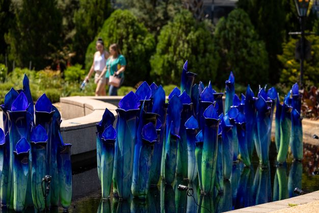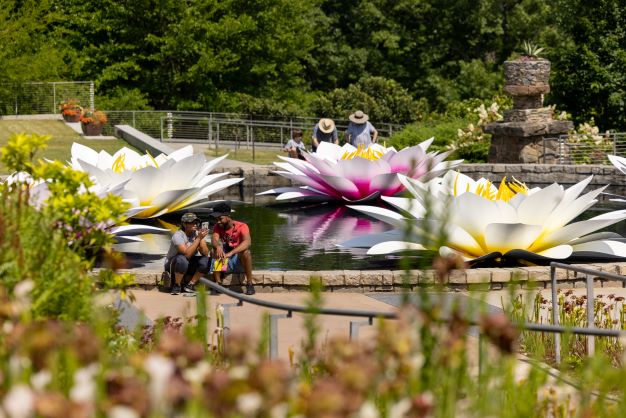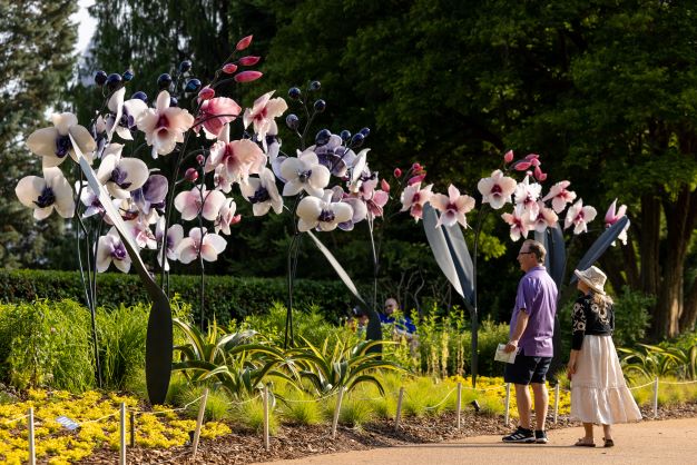 Meanwhile, in the main, formal gardens, guests may explore artist Jason Gamrath’s dozens of large-scale contemporary glass sculptures reflecting the beauty of nature. Presented through October 31, the exhibition features 13 installations of about 150 pieces of brilliantly colorful sculptures – all representing blooming plants. Of those, the artist has created about 30 exclusively for the Garden’s exhibition. Displayed throughout both indoors and out, the larger-than-life sculptures with metal accents depict giant pitcher plants, orchids, aloes, lotuses and more.