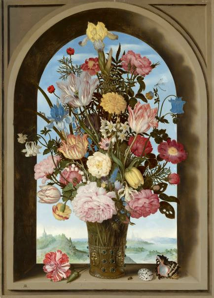 Supplemented with loans from around the world, the exhibition ‘In Full Bloom’ tells the fascinating story of the flower still life. In the space of just over a century, from c. 1600 until c. 1730, the genre underwent an extraordinary development, from ‘impossible’ imagined bouquets and daring constructions to sumptuous spectacle pieces. But the paintings were always exceedingly decorative, breathtakingly detailed and a feast of color with plenty of creepy crawlies.