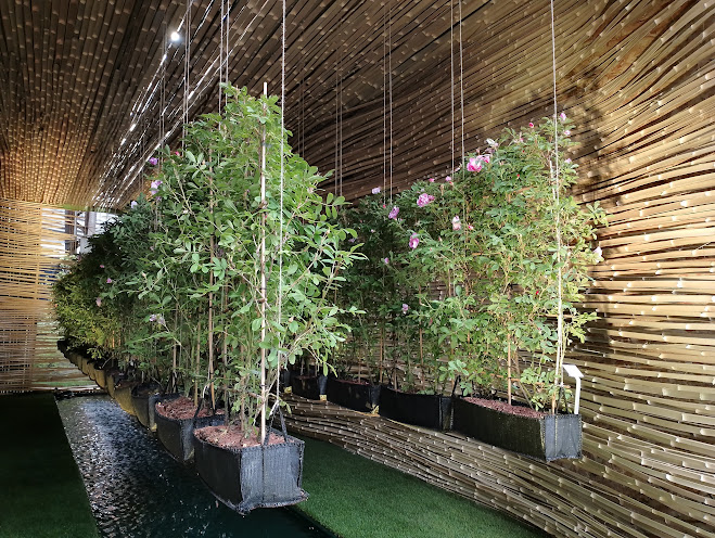 In a half-open modern pavilion in the center of the garden where the Brussels-Capital Region, the Flemish Region and the Walloon Region will present the innovative solutions of Belgium for the horticulture and agriculture of the future. The pavilion’s architecture is designed to minimize its environmental impact. Each material chosen is fully reusable or degradable, low-carbon, regenerable and natural: earth, wood, hemp, and naturally compostable bioplastic, all these materials will be reused or recycled at the end of the exhibition.