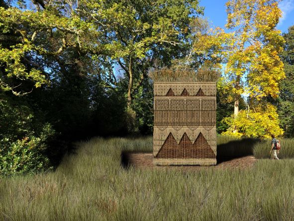 Standing proudly in Wakehurst’s Bethlehem Wood, The False Banana Pavilion takes inspiration from traditional huts found in Ethiopia, home of enset. This architectural installation, created by spatial-storytellers Flea Folly Architects, champions this wild banana relative, a staple crop for over 20 million people in Ethiopia. Upon entering the pavilion, visitors will be immersed in a cascade of giant paddle-shaped enset leaves that clad the walls, with the name and location of each unique landrace carved across them, a visual analogy of enset’s spectacular diversity. Sometimes known as ‘the tree against hunger, enset’s unique food security qualities have been the focus of Kew Research Fellow Dr. James S Borrell in collaboration with Ethiopian scientists. In mapping enset’s distribution and diversity, Borrell continues to increase scientific understanding of this remarkable crop, helping to support the food security and climate resilience of communities across the Ethiopian Highlands.