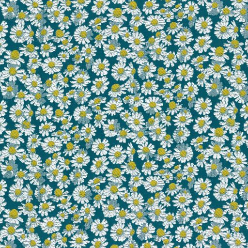 CAMILLA is a contemporary jacquard design created from a photograph taken during a walk in a meadow of chamomile flowers. A geometric motif with a multitude of bright, little flowers that repeat endlessly. Created with demi-shine viscose wefts on an EVO nylon ground. Available in five colourways.