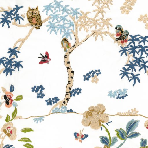 TEA CAT is influenced by a dreamlike natural world, this embroidered cotton satin pattern features rich, stylised flora (classic Chinese repertoire) combined with sweet animals on a pale ground. Available in only one colourway it’s a playful take on chinoiserie with a fairytale-like feel.