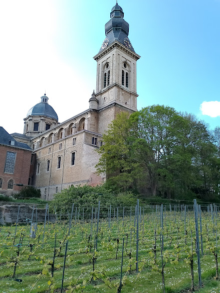 The abbey garden with herb garden, vineyard, and orchard was there in the Middle Ages. It’s a reconstruction based on historical models, built on the terraced gardens which a pretentious abbot created in the eighteenth century. The monks had grown vines on the hillside to the River Scheldt since the ninth century. The abbey has had vineyards again since 1983. Each year, four grape varieties provide a changing number of bottles of ‘abbey wine’.