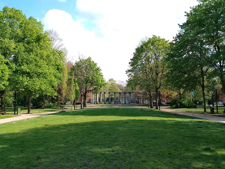 Close, with its 3.6 hectares, the Koning Albertpark or Zuidpark is still the largest park in the city center. The park has a playground, a petanque field and long rows of benches. It is a neo-baroque park and was once the location of Zuid station. It was converted into a traditional park in the 1930s. Ghent residents of all ages meet up here. The columns at the end of the park used to be at the entrance of the former station buffet. In front of the columns is a monument in memory of the war victims of both world wars.