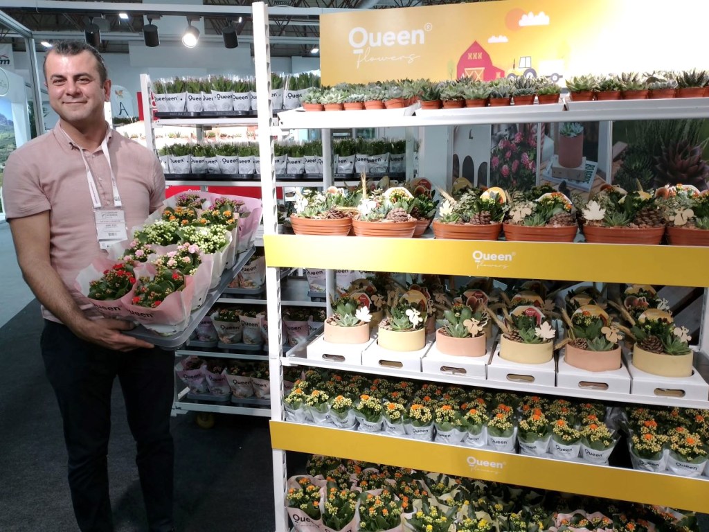 Kalanchoe, among others with added value with seasonal compositions for autumn and Christmas, was the main product of the stand of Queen Flowers, the Turkish partner of the well-known breeding company Knud Jepsen in Denmark. It is from Izmir, Turkey that the majority of kalanchoe seedlings reach the Danish headquarters.