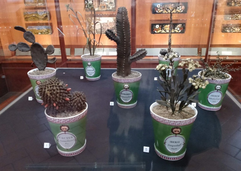 Those exhibited at the Opificio Museum are masterpieces of wax modeling, considered among the most beautiful in the world. The imitation of reality and the executive refinement of the ancient Florentine wax molders created during the 18th century still arouse amazement today. We admire, in particular, the creativity with which these craftsmen-artists have drawn on the use of the most varied materials to obtain natural effects, such as the addition of silver dust to obtain the brilliance of the surface of the Euphorbia canariensis, the addition of real thorns in cacti or the use of light vegetal filaments, similar to spider’s web, to simulate that sort of dust found between the small fat leaves of Sempervivum arachnoideum.