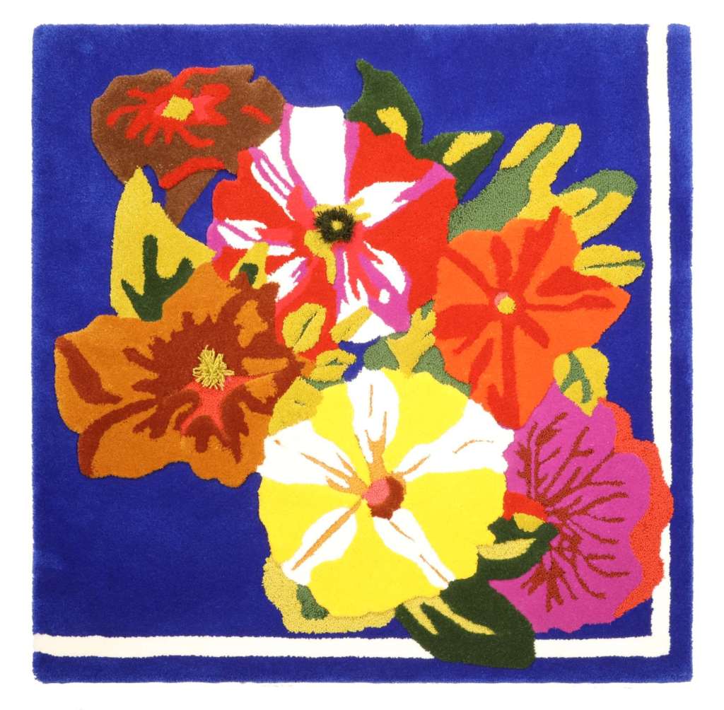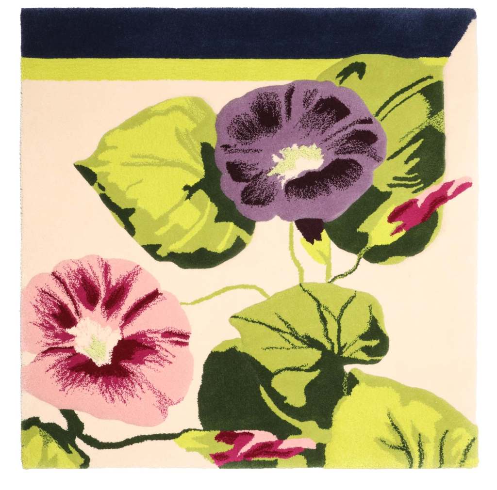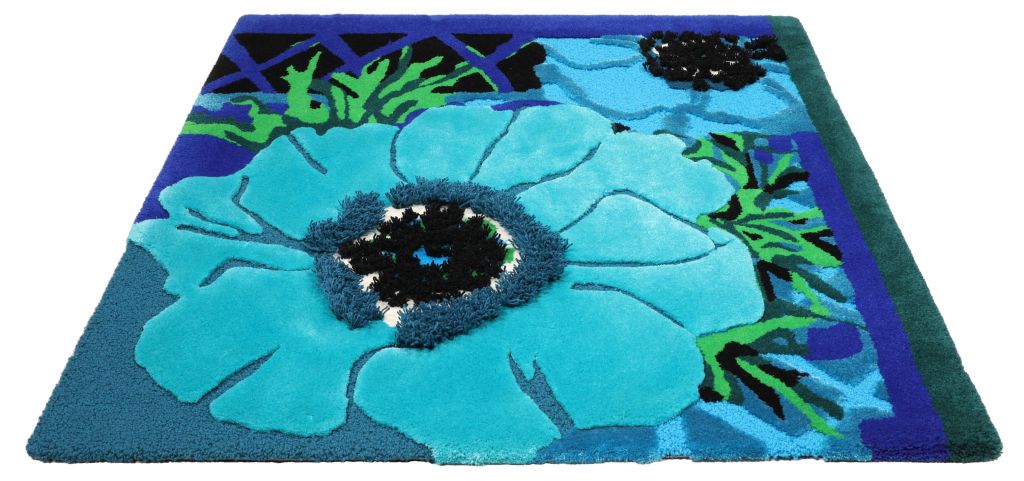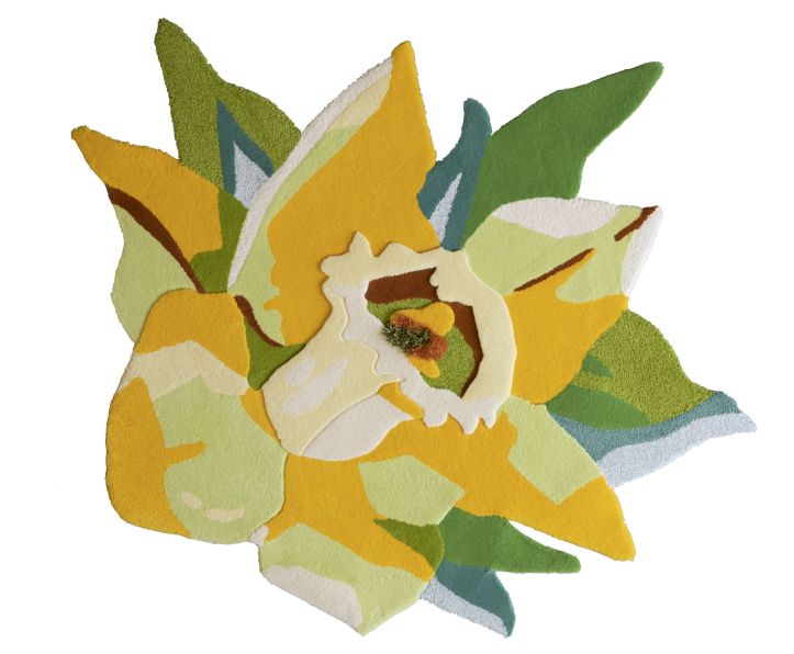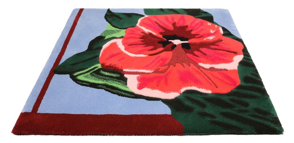 These same flowers were selected by the artist for his Logo label of his outerwear and, now, thanks to Carpet Edition, they have been transformed into authentic works of art for interior design. The subtle elegance and intrinsic philosophy of Ken Scott’s flowers. These flowers, bearers of the symbolic power of nature itself, have been knowingly preserved by Carpet Edition, respecting the vibrancy of the colors and texture of the fabrics through sophisticated hand craftsmanship.
