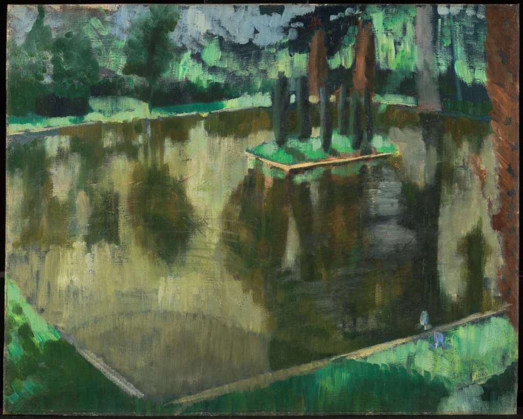 Ottoline Morrell described Garsington Manor as a kind of ‘theatre’ for social gatherings, and during the First World War she offered her home as a farm that would provide employment for the conscientious objectors and pacifists in her circle. Many of the artists and writers who visited created poems, paintings and stories inspired by the house and formal Italianate gardens, including Dora Carrington, Mark Gertler, and John Nash whose work will be featured in the exhibition. At the heart of the garden was the ilex-fringed pond where Morrell and her friends bathed by moonlight. The pond is depicted in paintings including Pond at Garsington (1919), by The Hon. Dorothy Brett and The Pond at Garsington (1916), by Mark Gertler, and is seen as the backdrop for social activity in many of Morrell’s photographs.