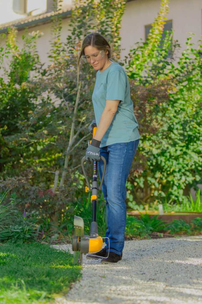 The GT 300e battery grass trimmer is the ideal solution for achieving a flawless finish to your lawn in a short time. Featuring a powerful motor, optimally balanced 2x20V 2Ah batteries, and a soft grip ergonomic handle, it allows for easy trimming and edging of weeds with over 30 minutes of runtime on a single charge.