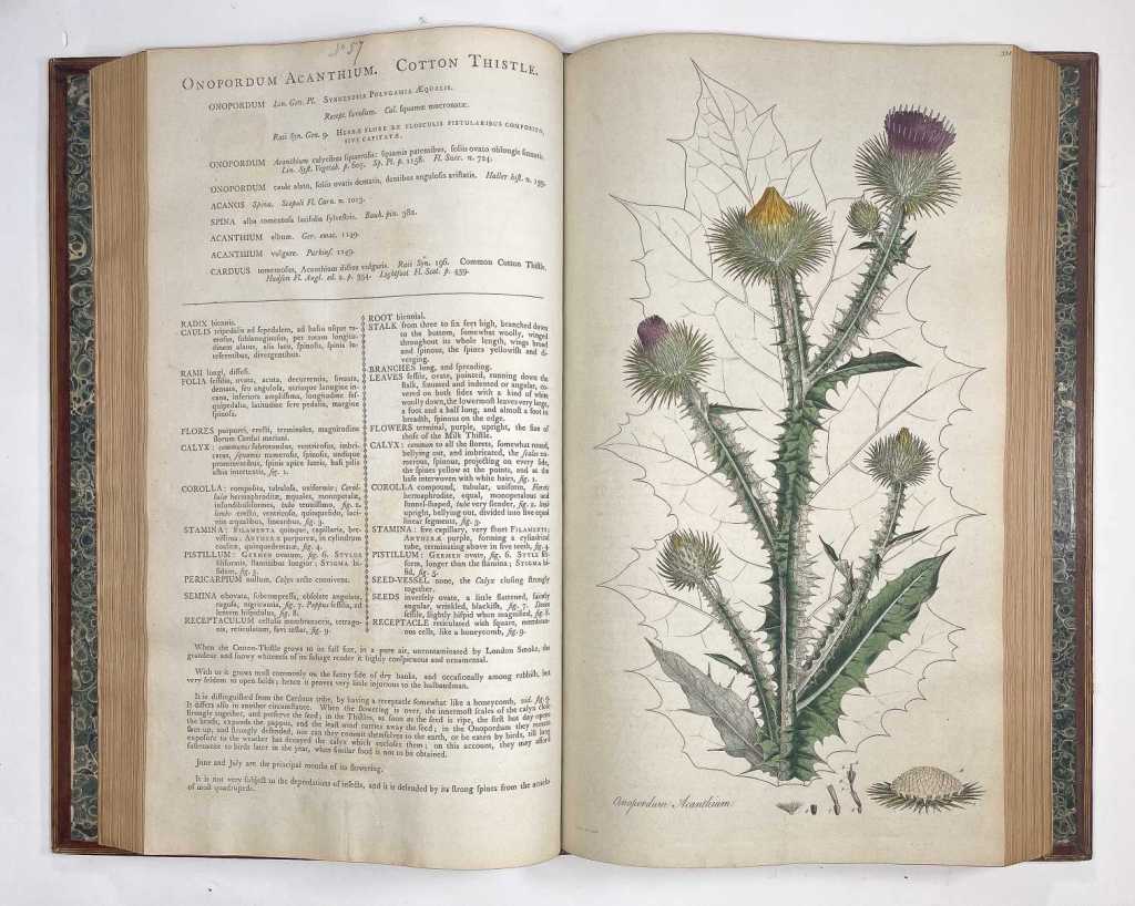 Sotheran’s showcases William Curtis’s Flora Londinensis, a detailed 18th-century record of wild plants growing in and around London. Designed as a practical guide, it blends scientific taxonomy with useful information on medicinal and everyday plant uses.