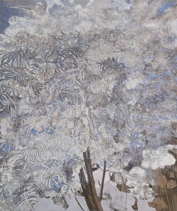 Dever’s paintings gracefully balance between representation and abstraction. At times, botanical forms emerge in striking clarity, revealing their delicate structures and natural rhythms. These forms seem to dissolve and spill beyond the boundaries of the canvas, transforming into atmospheric abstractions that invite viewers into a more meditative, emotional realm. The nineteen works on view include some of Dever’s largest and most ambitious paintings to date, each one layered with time and gesture in ways that echo the organic growth cycles of the plants he studies.
