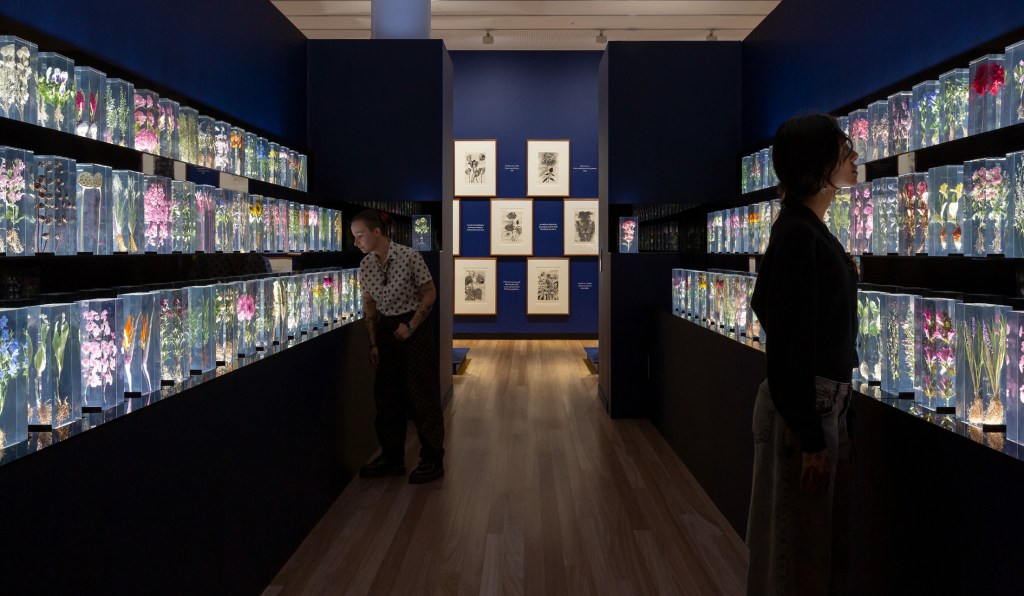One of the highlights is Block Flowers (2023) by Japanese floral artist Azuma Makoto, a striking installation composed of 130 plant specimens preserved in resin. Presented for the first time since its debut at the NGV Triennial, the work embodies the interplay between nature and artifice, permanence and ephemerality.
