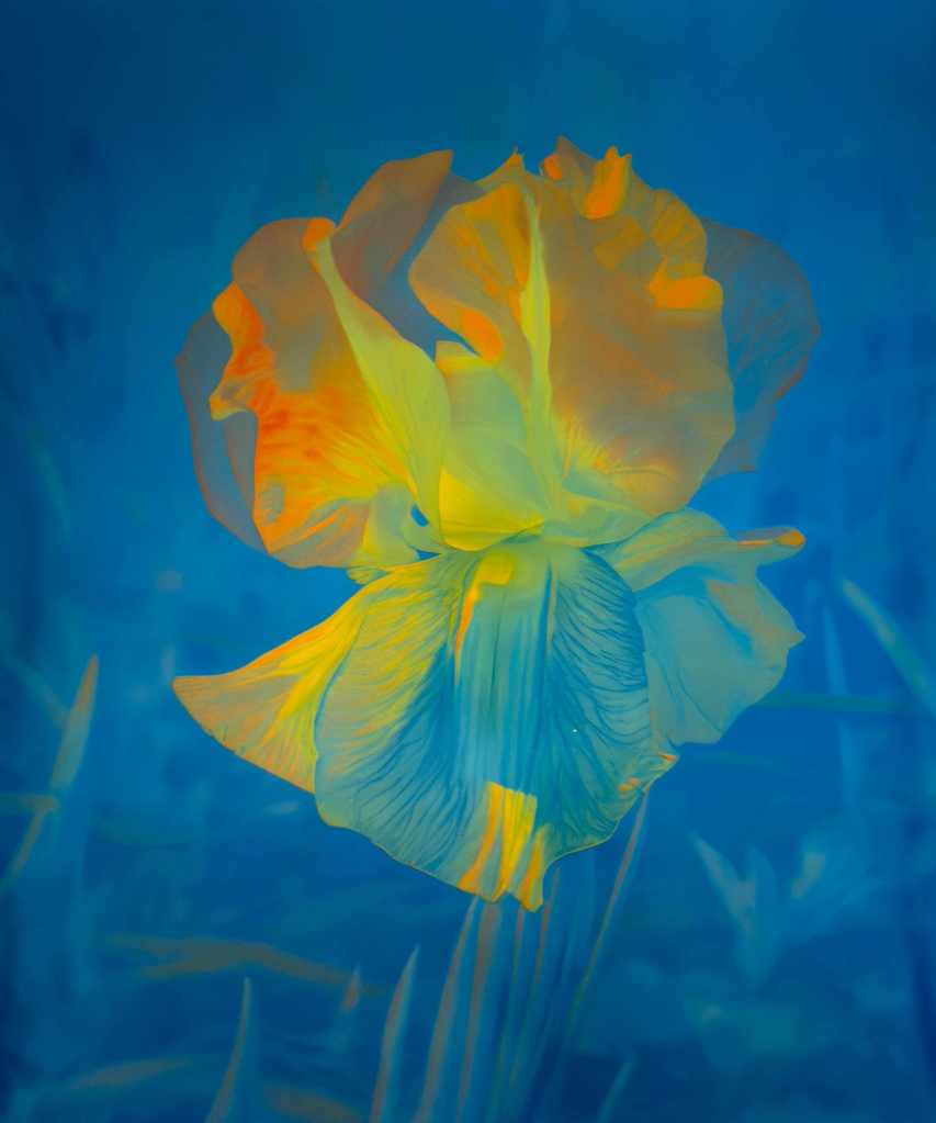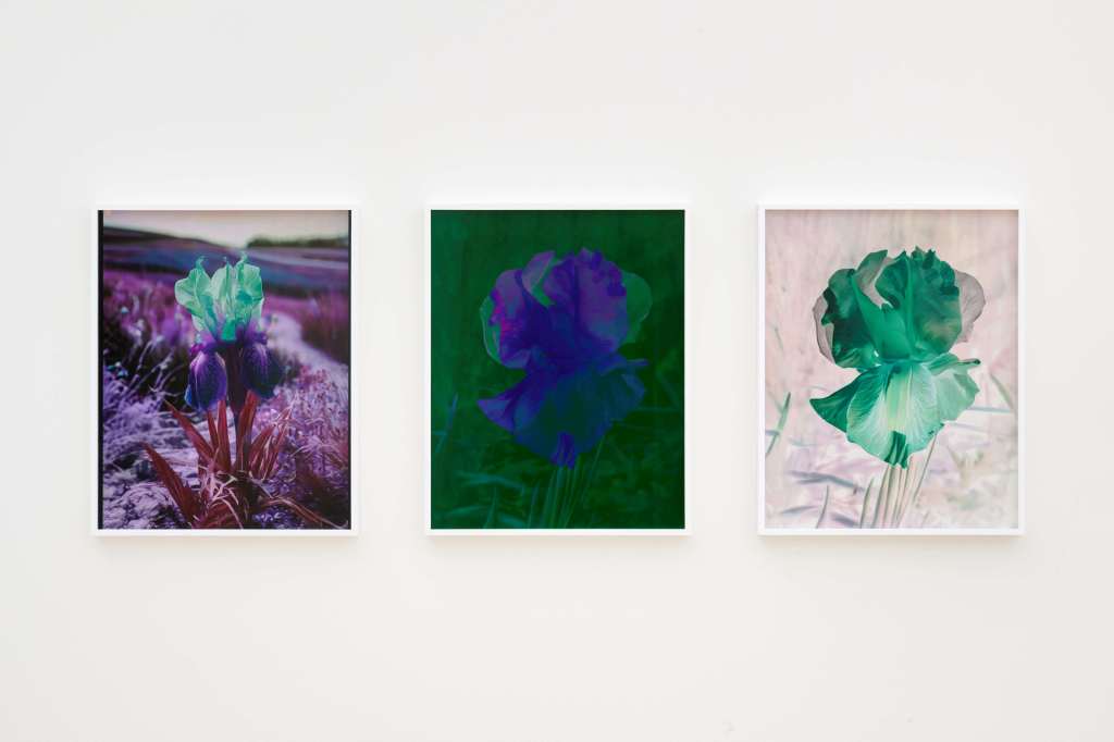 The exhibition opens with a striking photographic series that revives the now-extinct iris variety Monsieur Steichen, named after the artist by a French botanist in 1910. Oppenheim reimagines what this flower might have looked like by merging two vastly different image-making techniques: dye transfer printing, used by Steichen in the 1930s and 40s, and artificial intelligence, a defining force in today’s visual culture. The result is a speculative bloom that bridges the photographic past and the digital future.