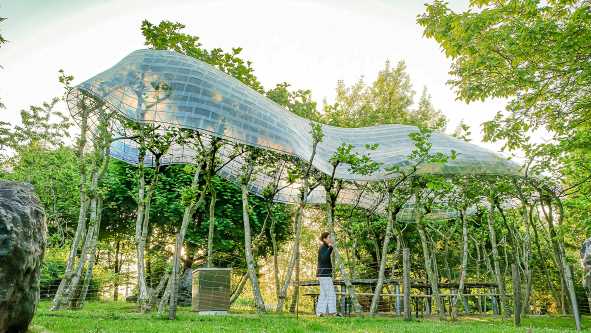 The final section, “Tree as Architecture,” introduces the emerging discipline of Baubotanik, in which trees are guided to grow into structural forms. Imagine buildings that evolve, adapt, and even repair themselves—living architecture that merges engineering with botany. Though it sounds futuristic, the exhibition points to centuries-old precedents, such as India’s living root bridges, proving that humans have long experimented with architecture that grows.