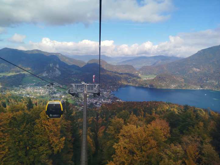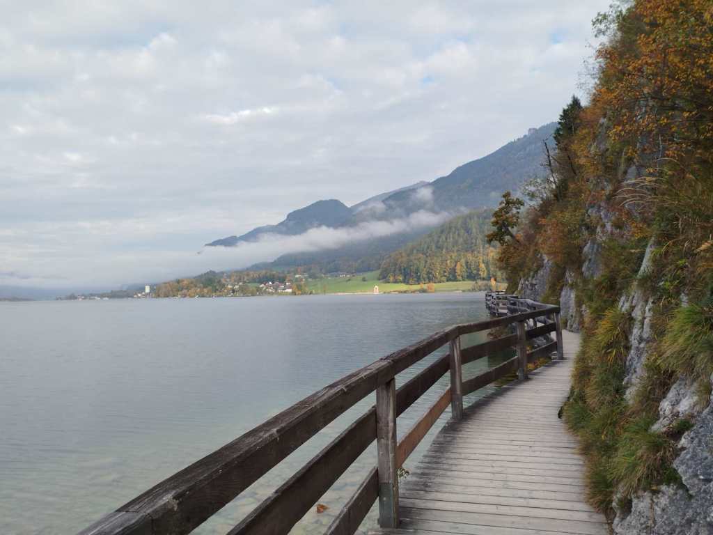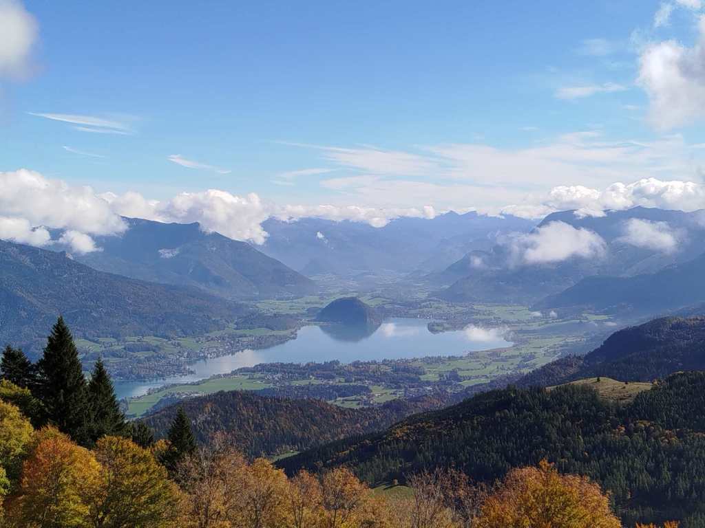 The following day invites exploration of St. Gilgen, easily reached by the regional bus network. The Zwölferhorn Cable Car glides above mixed forests of birch (Betula pendula) and Scots pine (Pinus sylvestris), revealing the brilliant hues of October. The Pillstein Panorama Trail offers sweeping views of the Wolfgangsee below, its shores ringed with beech forests now burning in shades of copper and wine-red. After a gentle walk, the mountain restaurant Das Zwölfer provides a perfect pause: local cheese dumplings (Kasnocken) paired with alpine herbs and honey from nearby apiaries. The descent to the Plombergstein Trail leads through the limestone formations of the Steinklüfte, where Asplenium trichomanes and Polypodium vulgare cling to shaded rock faces alongside Cladonia lichens, bioindicators of the area’s pristine air quality.